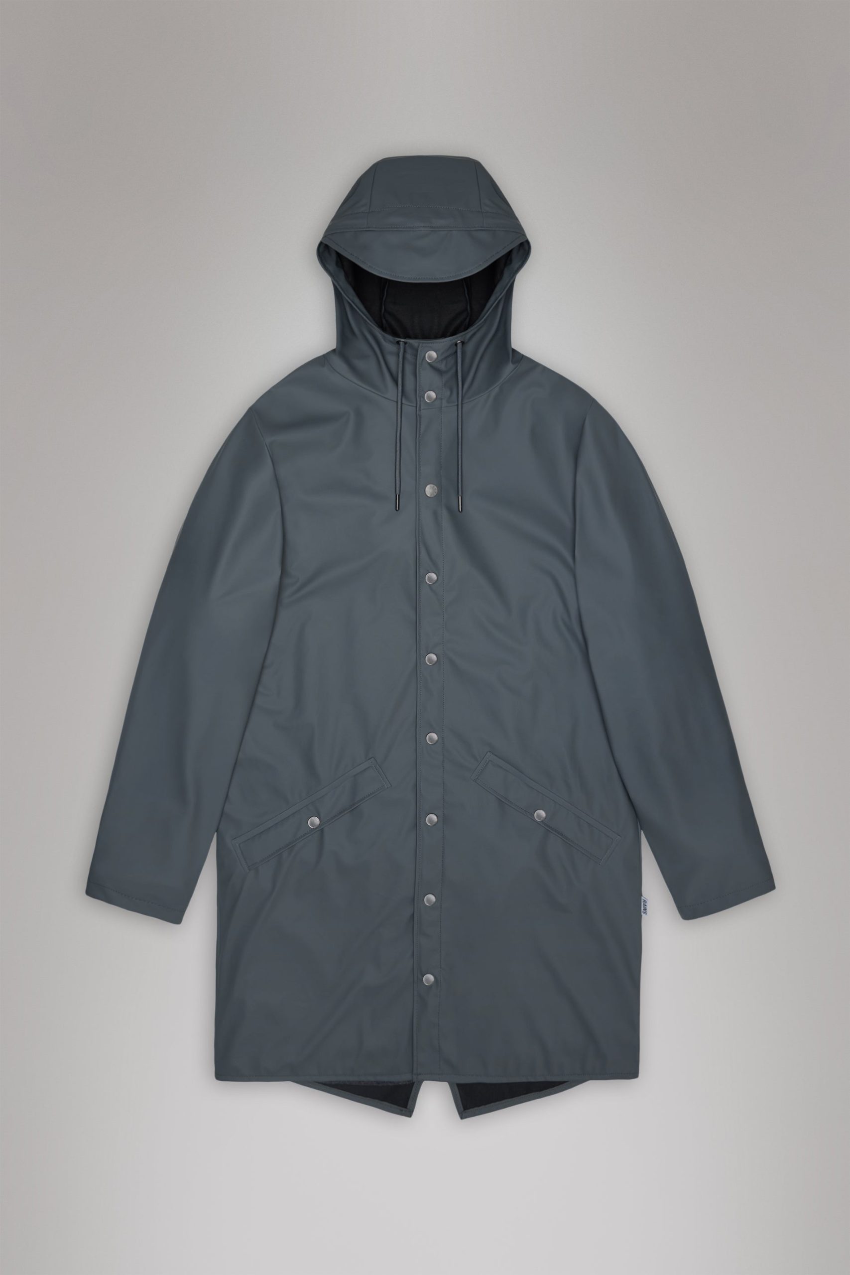 Long Jacket is cut from Rains’ signature PU fabric and features welded seams. The finish is lightweight with a smooth feel.